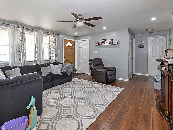 WELCOME HOME to this meticulously maintained 3 bedroom/3 full bath ranch in the Riverside School District. Such nice flow in this house with laminate/hardwood flooring running through the living and dining rooms along with the neutral gray paint and lots of natural light in this living space. The kitchen has beautiful tile flooring, stainless steel appliances, a gas stove, an abundance of cabinets and plenty of counter space for all of your cooking and baking needs. There is a Jack and Jill bathroom between two of the bedrooms & an additional full bath on the main floor. The additional finished space in the lower level includes a spacious game room, another full bath, and a bonus room for an office or playroom. The outside space includes a large paver patio, a fire pit, a pool with a spacious deck, and a fenced in back yard. This property also includes an attached garage. Come see this home located in the Frisco neighborhood - it won't last long!