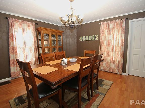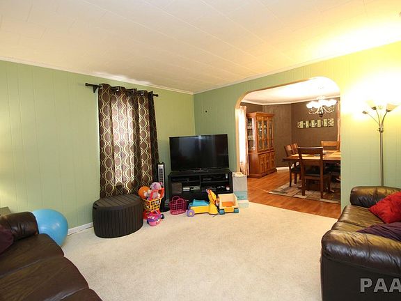 Charming updated 3 bedroom home centrally located in the heart of East Peoria. Updated Kitchen (including dishwasher and stove) and baths, formal dining room with new laminate flooring. Spend evenings on the enclosed front porch and enjoy the convenience of a breezeway off the kitchen. Private wooded rear lot- beautiful as the tree's begin to change. Newer roof, flooring and paint. Main floor den could be used as 4th bedroom however must walk thru to get to upstairs bedrooms. .