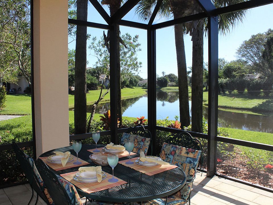 Lovely one story end villa with expansive water views. Nicely decorated home with upgraded granite kitchen, plantation shutters and custom window treatment in great room. Custom screened and extended lanai/patio. Property lightly used by sellers. Can be sold furnished with some exclusions. Enjoy walking or short drive to shops, galleries, and restaurants in the heart of Palm Beach Gardens! Minutes to golf courses, PB Gardens malls, beaches, and airport. A great location!