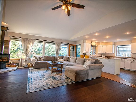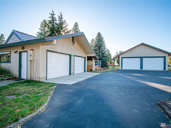 Stunning mountain views from this charming 3 bedroom rambler. Spacious open floor plan, updated kitchen, huge pantry, beautiful wood flooring. Relax along side your cozy wood stove. So many beautiful finishes including beautiful rustic barn doors. You will fall in love with this home! Enjoy the peace of living up above Cle Elum in this wonderful corner lot. Two 26'x36' detached garages, separate garden & wood sheds, the workshop has 3/4 bath & wood stove, so much storage for all of your toys!