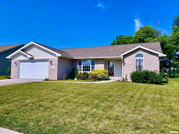 Exceptional three bedroom, 2 bathroom ranch style home with open floor plan located in desirable Cottonwood Estates! The move-in ready interior features a comfortably sized living room with vaulted ceiling, a fully equipped eat-in kitchen with hardwood flooring as well as a conveniently situated laundry/mudroom. Primary bedroom with tray ceiling is located on opposite side as the other two bedrooms. Property also features a large/unfinished painted basement w/two egress windows, storage area and rec room. Enjoy the covered rear porch and private backyard with an extra-large side yard! Large garage with extra storage/work area is an added bonus. Conveniently located near the interstate with quick access to Morton, Pekin, downtown East Peoria, and Peoria. Don't miss this one!