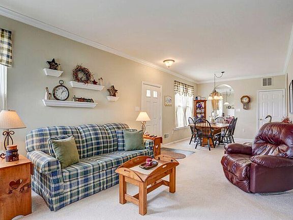 Upgraded end unit, first floor condo features 2 BR, 2 full BA, upgraded kitchen counter tops and faucet, wainscoating in breakfast nook, arched (rounded) doorways, bay window. 9 foot ceilings with crown molding in kitchen, DR, LR and hallway. 1 car garage with over-head storage. Back patio overlooks farmland. Convenient location with easy access to PA Turnpike.