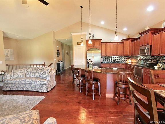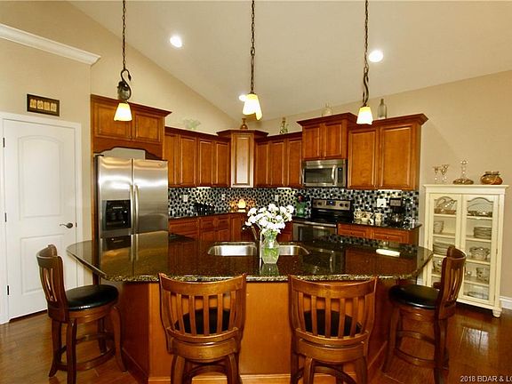 RARE FIND! This spacious villa in sought after golf course community has upgrades galore! Hardwood floors, upgraded glass tile backsplash, beautiful cherry wood cabinets, and more! The wonderful 3 seasons room brings the outside in with fabulous views overlooking the 12th fairway of the award-winning Old Kinderhook golf course. This home offers main level living with a spacious master suite with oversized closet and dual vanity, and walk-in shower with glass door. The convenience of the laundry on the main level and the first guest room all without a single stair! The lower level family room was a custom built-in wet bar, bonus room for storage and a guest room with deck assess off the family room and guest room. This is the perfect place for full timers or vacationers alike! Ready for summer fun? Best view in the neighborhood of the 4th of July fireworks and the 12x32 slip is located so nearby just jump in a golf cart and head down to the dock for a day on the water! Call today!!