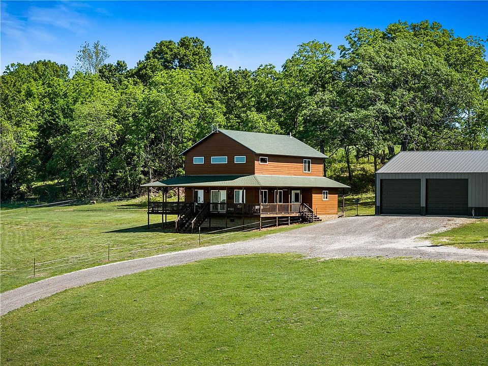 Enjoy all that this rustic cabin style home has to offer including incredible south facing views with stunning sunrises and sunsets. This custom home was built in 2022 and offers 50 year warrantied premium diamond coat siding, energy efficient appliances, multiple HVAC units and much more. The detached shop offers 2400 enclosed sq ft and another 960 sq ft of pole shed to protect all of your equipment. Property is 42 acres m/l and has a working cattle corral ready for a livestock operation for the farmer. There is also abundant wildlife for the nature enthusiast. There are 3 ponds on the property. Just a few short miles to Hwy 412, this property makes commuting to Northwest AR or the Harrison, AR area very convenient. Property is not far from the Buffalo River area. Exact acreage to be determined by survey before closing. Reference mls #1276669,1282387.