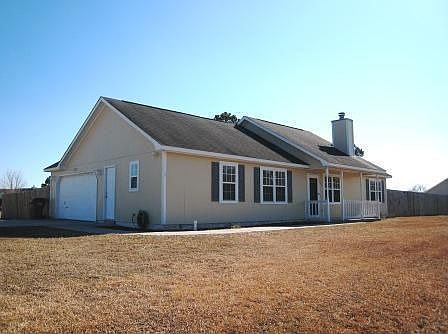 5 minutes to NC-172 gate. Barely 10 minutes to Piney Green or Main Gate. Gorgeous home with decorator colors throughout. Recently painted inside & out. Recently replaced carpet and vinyl. Cathedral ceiling over open Living/Dining/ Kitchen areas. Breakfats Bar overlooks from Kitchen into Living area. Dining Room also opens to screened-in patio. Split bedroom plan gives extra privacy to Master Bedroom, which features deep walk-in closet & 7x7 sitting area outside Master Bath. Side-loading 2-car garage takes advantage of corner lot. Extensive privacy fencing for backyard & large side yard.