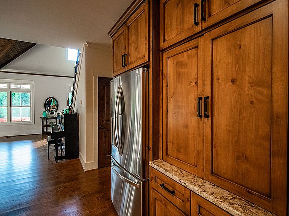 Beautiful, custom-built country home on 10 acres with fishing pond and approx. 600' Pine Log Creek frontage in Sonoraville/Fairmount area. Additional 55 acres with 2 ponds and approx. 2,000' of Pine Log Creek also available. Home features 4/5 bedrooms, 4.5 baths, finished attic/bonus room, 2-car detached garage with upstairs storage, main floor office and laundry room, finished basement with 9' x 55' storm shelter/storage. Additional custom features include 8.5" white oak custom flooring, Jeldwin aluminum-clad windows and doors, complete closed-cell foam insulation, James Hardie siding, soffit and fascia, LED lighting, soft-close doors and drawers on all cabinets, solid knotty Alder doors and cabinetry.