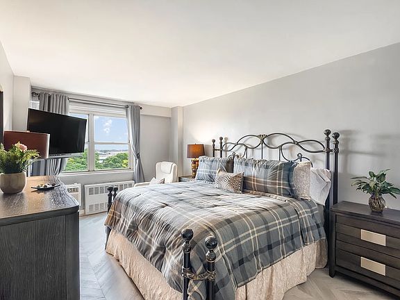 Welcome Home!! One of a kind, true three bedroom located on the seventh floor in this beautiful condo hi rise. The previous owners spared no expense to make this a turn key purchase. Take off your shoes at the door as you will be pleased to walk on the super clean hardwood floors. There is a lovely kitchen with stainless steel appliances. Move into the large living room the leads to a huge balcony of approximately 175sq ft. You will enjoy the unobstructed skyline with views of Manhattan to the north, as well as east and west. The primary bedroom easily fits a king sized bed and has a great walk-in closet. The other two bedrooms can easily fit queen sized beds. The unit features excellent closet space as well as an additional half a bathroom for you convenience. The building features 24 hour security, an on-site super, laundry room and more. There is parking available as well in the building. The building is close to the Gateway Mall which features BJs, Best Buy, Target as well Olive Garden, Red Lobster and more. The BM5 express bus is literally across the street that takes you door to door to midtown Manhattan.
