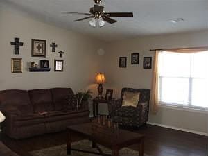 Extra nice 3 BR, 2 BA vinyl sided home w/ large living room & kitchen. Kitchen has nice oak cabinets and large pantry. Has cathedral ceilings in living room & kit/dining; and tray ceiling in Master bedroom. Covered patio and a large level lot.