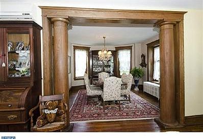 Stately 3-story Colonial spun into a modern gem but w/original woodworking & character. Spacious Living Room w/brick fireplace that leads to the covered porch w/French doorway; grand split staircase w/bookcase accents; Dining Rm w/pillars and chandelier; Custom Granite Kitchen w/stainless steel appliances, center island, & Breakfast Rm w/Palladiun window overlooking the gardens w/access to the newer Powder Rm w/pocket door. The Breakfast Rm leads to the back brick Patio w/arbor; MBR features beautiful moldings, walk-in closet, & luxurious Bath w/Whirlpool tub; the two additional Bedrooms also have moldings & abundant closet space w/access to the modern Bath. The Loft Bedroom gives extra living space w/built-ins (plus a secret door that leads to Attic storage). Roof (5 years), some newer windows (older windows updated to bi-glass with double insulated panes), magnificent gardens, 2-c gar w/loft storage, & so much more. This home has rec'd a Historical Preservation award from Ridley Park Historical Society.