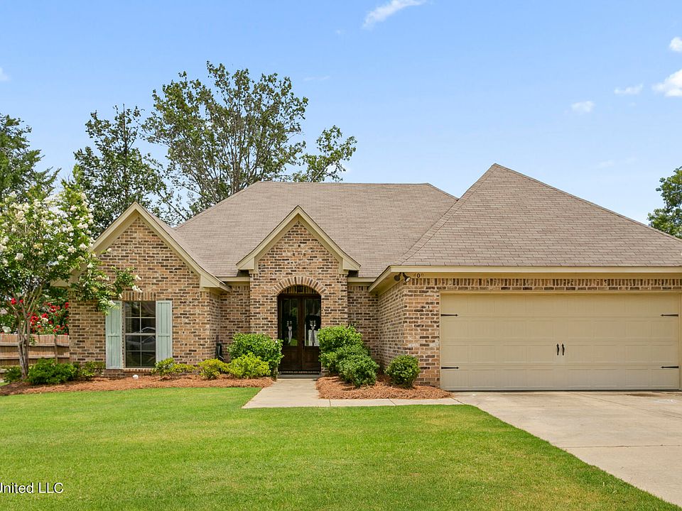 As you enter this open split plan home, you are greeted with a foyer entry, highlighted by a beautiful brick archway leading into the expansive living room. The living room boasts a cozy fireplace and seamlessly flows into the modern kitchen, which is equipped with an oversized island with bar seating, granite countertops, stainless steel appliances, lots of countertop and cabinet space, and a separate dining area.