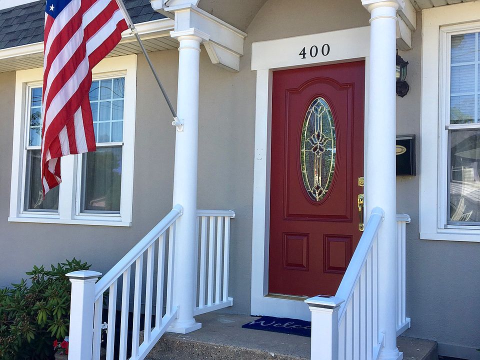 Wonderful opportunity to own this beautiful 3 bedroom colonial boasting many recent improvements and upgrades! Wonderful curb appeal with a maintenance free exterior. Newer roof, vinyl window capping, front door, gutters and downspouts plus brand new fiberglass posts and vinyl railing with solar caps for a lovely entryway. Fantastic newer 2 car detached garage addition with insulated garage doors, loft storage, its own 60 amp electric panel and plenty of driveway parking. Relax on the back deck in the privacy of the spacious back yard with lawn irrigation system and newer vinyl fencing with side and back gates. Inside there's hardwood flooring throughout the living room and staircase (under carpet) as well as the dining room. Notice the natural wood floor inlays, French doors and oak woodwork. The living room also features a cozy brick wood burning fireplace along with lighted sconces for ambience. French door to sunroom can also be perfect as a home office or playroom. Eat-in kitchen with ceiling fan offers new glass bead backsplash, vinyl flooring plus access to the convenient mud room. Three spacious bedrooms all with easy care laminate flooring and ceiling fans. Gorgeous completely renovated full bath featuring ceramic tile flooring, a subway tile tub shower, open shelving and a double vanity with granite top and self closing doors drawers. Vinyl tilt windows throughout the main part of the house with wood double hung windows in the sunroom. Spacious basement perfect for storage or finishing for additional living space if desired. The washer and dryer remain. All this plus brand new gas heat and newly installed central air. Located on a lovely quiet tree lined street, come see all that this home has to offer!