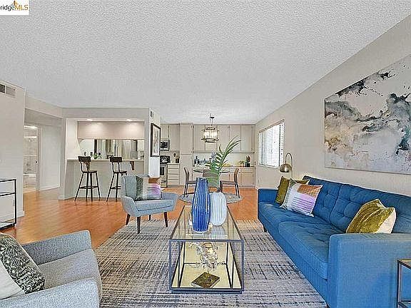 This quiet 2-bedroom, 2-bathroom 2nd floor condo in San Leandro provides approximately 1671 square feet of living space. Large primary suite with large walk-in closet, bathroom and powder room. The second remodeled bathroom has jetted tub. Freshly painted. Stainless steel appliances: refrigerator, electric range, microwave, dishwasher, breakfast bar, buffet bar with lots of cabinets, full-size large washer & dryer in the closet in the hallway, wood burning fireplace. Enjoy your private balcony. Secure garage parking on ground level. Elevators. The unit is centrally located - 5 minute walk to San Leandro BART, 1/2 mile from San Leandro Plaza and Pelton Square where there is a post office, Safeway grocery store, restaurants and shops. Quick and easy access to the San Mateo Bridge, 580 and 880 freeways. Also, the Marina, walking trails, and golf course are only 4 miles away. Drive by the property first to acquaint yourself with the neighborhood. Year built: 1982 Square footage: 1671 sq. ft. Parking: 1 parking space Deposit: $2,850 Pet policy: No pets. Utilities: Water and garbage included, tenant responsible for PG&E Property type: Single level condo
