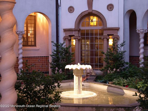 Located in the 1920s historical Santander building at Asbury Park, this great summer-getaway is a short 5-minute walk along picturesque Deal Lake to the ocean shore and boardwalk. The Santander breaths old world Mediterranean charm with the courtyard fountain and garden, vaulted and domed foyers, massive arched wood doors, stained glass and hanging wrought iron lamps. This second-floor condo can be entered by either an elevator or ornate stairway. Designer concepts bring the outside Spanish/Mediterranean architecture to the inside for new kitchen, old-world nook, era living room and bathroom. The separate dining and kitchen make for the best studio design in the Santander with relaxing sights and sounds of the courtyard fountain and Deal Lake. The furnishings include maple wood cabinets,