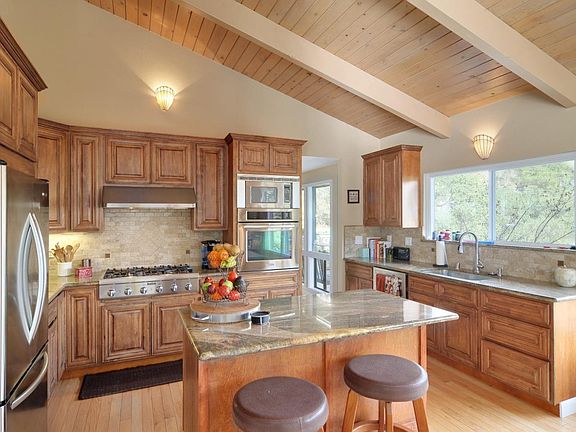 Contemporary meets country nestled in the back of Devonshire Canyon. Best of all worlds, away from the hustle and bustle but less than 2 miles to train station and downtown San Carlos. Walls of glass with no need for window coverings, vaulted and beamed ceilings, 2 fireplaces, great room plus formal dining and living spaces. 4 decks including one with spa right off the master suite. Updated baths with massive stone double shower in master suite with double sink vanity and skylight. Oversized 2 car garage plus RV parking space. Adjacent lots included making it approx 19,696 sq ft of land to protect your privacy. A very special property with a great floor plan, perfect for entertaining and enjoying nature.