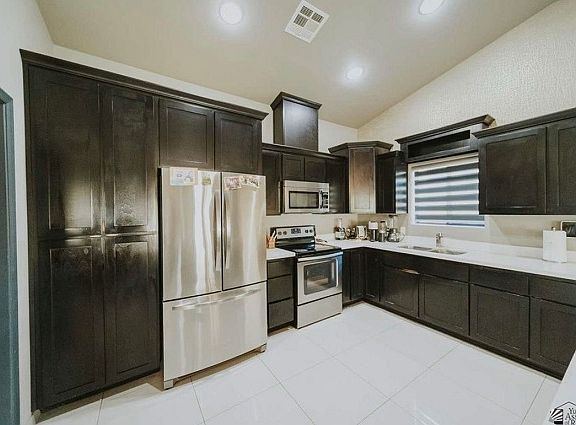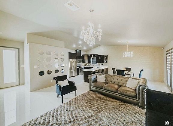 - Exterior features: Desert Landscaping, Electric Vehicle Charging Station, Fenced Backyard, French Doors, Granite Countertops, Heating system: Forced Air, High Ceilings, Kitchen Island, No Utilities included in rent, Solar Panels