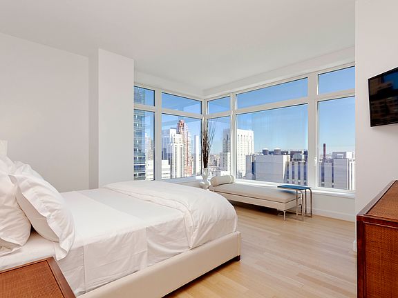 LEASE OUT If luxury and tranquility is what you seek on the Upper East, this impeccable 4 Bedroom, 3.5 bath home at the Laurel is for you! Live in a sumptuous sun-drenched corner apartment in a graceful LEED -certified glass & Indiana limestone tower, with walls of oversized windows framing quintessential South, East and Northern Open city views. Any chef will delight in the meticulous kitchen with Poggenpohl frosted panel & white lacquer cabinets, honed marble counters, a back-painted white glass backsplash, Sub-Zero fridge & wine cooler, Gaggenau convection & steam ovens, Gaggenau induction & natural gas cook tops, translucent glass sliding doors. Grand entertaining is accommodated in the generously-sized living room / dining alcove with front row seats to the city sights. Your large corner main bedroom faces north and east with amazing views of the east river and city skyline. The main bathroom has radiant-heated floors with honed Bianco white marble mosaic tiles throughout, a Zuma Collection tub, separate walk-in rain shower and full-height mirrored flush linen closet. The three other bedrooms are all very spacious and offer incredible views as well. The Laurel sets the standard for full-service living with a complete staff and over 11,000 sq ft fitness center with a pool, sauna, and steam room, as well as an atrium lounge, recreation center, playroom, 24-hour concierge, and doorman-attended lobby.