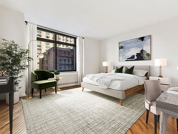 The Kingsley has an exceptional staff including full time doorman, concierge, hallway attendant, live in resident manager, handyman and numerous porters. Amenities include state-of-the-art gym with Peloton bikes on the 31st floor, garage with direct access to the building and bike room. Access to transportation is effortless with the Q train just 1 block away, plus the 6 and F trains are also within easy reach. Sorry, no pets.