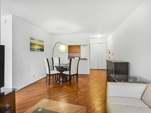 Spacious and sun-filled Jr. one-bedroom at The Kingsley Condominium. With laundry on every floor and only 8 apartments per floor, this bright home features a generously sized living room with dedicated areas for dining and a home office, a pass-through kitchen with full-size appliances (including a dishwasher), and a corner bedroom with double exposures, providing excellent natural light. A dressing area lined with oversized closets leads to the ensuite bath. Additional highlights include oversized windows, hardwood floors, an enormous entry closet, and two HVAC units.