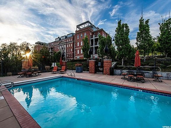 The Meridien Condominiums are located in the high avenues, situated on a 3.2-acre hillside with finely manicured gardens, heated pool, hot tub and incredible, unobstructed views of the Salt Lake valley and Wasatch front mountains. This historic property was meticulously restored and completely renovated and is Salt Lake's finest high-rise luxury living. Ground floor, contemporary unit with huge private patio, gardens and direct access to all the common outdoor areas. Floor to ceiling windows and French doors flood the living space with natural light. Methanol fireplace, beautiful natural cherry floors and automated shades for a clean, modern look. Dining space with unique Granite wall piece, very cool light fixtures and custom side bar with wine/beverage fridge. Kitchen includes Subzero refrigerator and additional freezer drawers, Wolf oven and gas range with griddle, plenty of counter space and breakfast bar. Master suite features built-in King size platform bed, desk, makeup station, private patio and custom walk-in closet. Marble surround bathroom with jetted soaking tub, walk-in shower and double vanity. Second bedroom with full bath that has direct access to the office (which could be used as 3rd bedroom). Additional 1/2 bath is plumbed for large shower (which it previously was). Built-in stereo speakers throughout, high speed internet, alarm system, two prime garage parking spaces next to entrance, 3 storage units with roll-up doors and 2 additional 10'x10' storage cages. Common areas include outstanding, fully equipped exercise room, yoga studio, conference room with TV and kitchen. Just minutes from downtown, City Creek canyon and numerous trails for biking and hiking. Excellent proximity to Salt Lake International Airport and world class skiing.