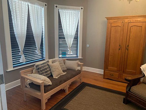 Beautiful historic home has 4 bedrooms with 4 individual bathrooms and loads of character and charm. Has previously been used as a bed & breakfast. Three of the four bedrooms are upstairs. Some original doors and fixtures. There is a turret in one of the upstairs bedroom with a spiral staircase, would be a great play area or spare sleeping area. The back yard area has a pergola covered patio area. Parking area located in the back of the property. Also has two living areas, dining area and a laundry room.