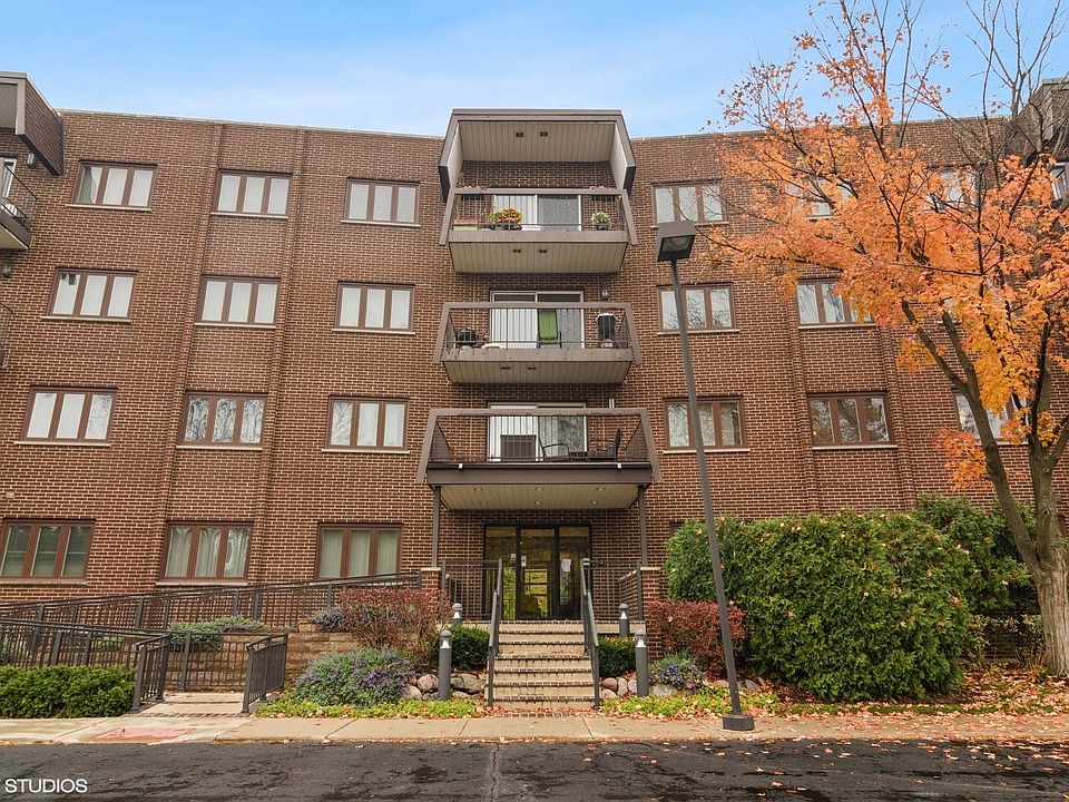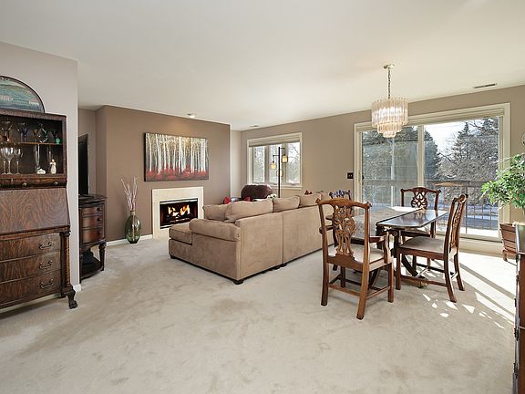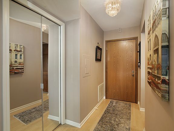 Comfortable living in this updated, South facing, 2 bedroom, 2 bath condo. A nice foyer welcomes you into the quiet & sun-kissed home. Spacious kitchen with new stainless steel appliances, new hardware , new garbage disposal and room for a table or floating island. The kitchen is open to the combined living & dining rooms. The living room is perfectly set with a center fireplace, updated Pella windows and a sliding glass door to the oversized balcony. The large primary bedroom is impressive with the space it offers, desirable walk-in closet & private master bath. There is also a second bedroom and additional full bath with tub. The 2nd bathroom is off the hall and includes a closet with stackable laundry machines. Storage room conveniently located on the first floor. One underground parking spot #8. Older A/C unit works but is "as is". This condo has been well loved & is ready for a new owner to move in and enjoy. Wonderful location near shops, transportation and entertainment.