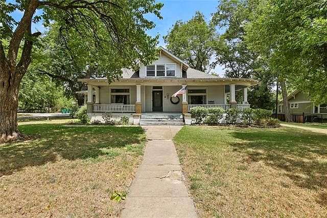 Unique, TWO HISTORICAL HOMES on just over an acre in prime Pilot Point. There's a detached guest house with one bedroom, 1.5 baths, full kitchen and living room. The main house has original details throughout with a charming wrap around front porch, hardwood floors and built-ins. The kitchen boasts a large center island, dbl ovens and ample prep space. Located just off the kitchen is a bright breakfast nook with built-in bench seating. Both secondary bedrooms are located downstairs, each with walk-in closets. The master retreat is upstairs and offers a sitting room, two walk-in closets and an en suite bath. There's plenty of space outdoors with an above ground pool on a gorgeous piece of property.