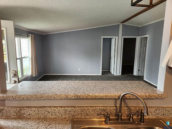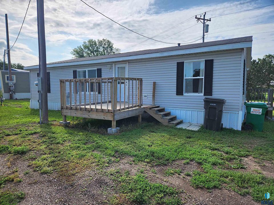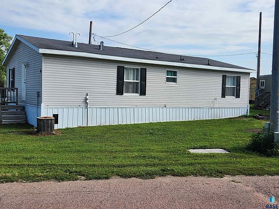 This double wide mobile home features 3 nice sized bedrooms and 2 baths. Beautiful dine in kitchen with lots of cupboards. Living room with vaulted ceilings leads to the front deck. Large master bedroom with big walk in closet and en suite bath. Metal, insulated skirting and nice vinyl siding complete the outside of the home. Washer, dryer (in the laundry area), stove, fridge and dishwasher stay. All new flooring and newer bathroom vanities. Located in Beresford-small town living at its best! Lot rent is only $170 per month! Many Sioux Falls parks are over $400 a month for lot rent. Seller is related to listing agent.