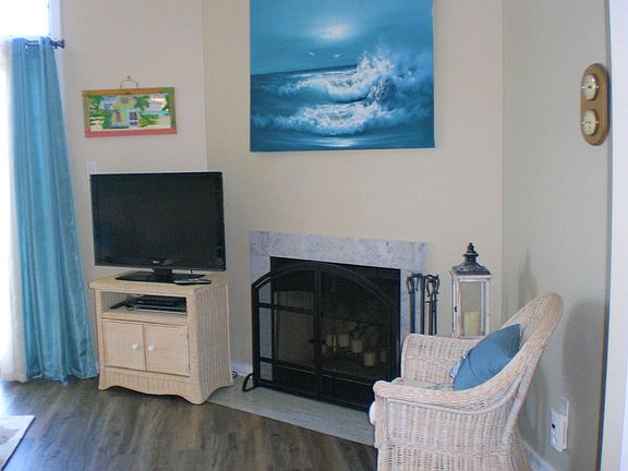 Well kept 2 bedroom/2 bath top floor condo at Aqua Beach. This unit is in the cluster that houses 4 units on one side and 4 on the other side (2 up and 2 down). Brand new hardwood flooring throughout except kitchen and baths. Custom wooden blinds, stainless appliances, wood burning fireplace and lots of charm. Aqua beach Condo association has a private beach for its residents only with beautiful views of the inlet. They also offer a space available place to keep your jet ski or canoe or kayak on the premises. Central Air, ceiling fans, electric heat pump and an airy open living space will make your time in this unit very comfortable. Peace and quiet as this unit faces the bird sanctuary with lush greens and lots of sun. Nice deck for enjoying the peaceful sounds. Unit is being sold mostly furnished - excluding electronics, all bedding (comforters, pillows) living room rug (covering hardwood floors) and pictures and knick-knacks. The large furniture is being conveyed with the property. Inventory is very scarce in the Wildwoods so come and see this lovely unit as soon as possible. Appointment necessary until the end of September. Property is on lockbox call listing agent for info. Condo fees are to be reduced shortly - Aqua Beach was able to get the Flood insurance for this building reduced so the fees will reflect that reduction once we know how much that is.