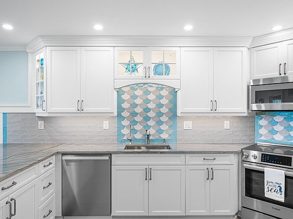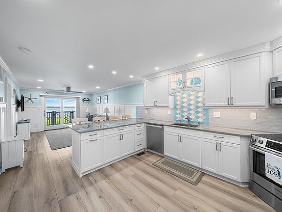 Walk through the front door of this beautiful 2 bedroom, 1 bath, first floor Aqua Beach condominium and fall in love with the unobstructed water views of the inlet and ocean beyond. Recently renovated to include, new kitchen cabinets, new granite countertops and custom backsplash, high-end stainless-steel appliances,(Miele, Thermador and Bosche) recessed lighting throughout, along with all new flooring. You will appreciate the custom millwork along with the entirely updated bath with convenient and clever laundry closet. Associated docs contains a full list of the many improvements. The open kitchen was thoughtfully designed to flow into the living areas for ease of entertaining. The condo features a charming guest bedroom with deck located at the front of the property and the primary bedroom is perfectly situated at the rear of condo to take full advantage of the stunning water views. Spend an afternoon sunning on the association's private beach or relaxing on your deck watching the boats float by. The Aqua Beach Condominiums are tucked away in a quiet area of Anglesea and are a quick drive to Stone Harbor or the many restaurants and attractions of North Wildwood. Truly a turnkey property.