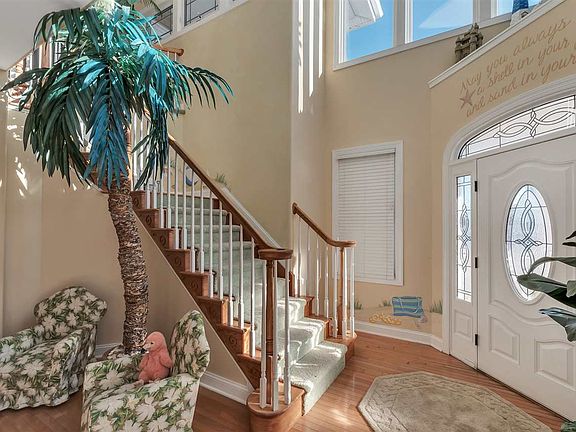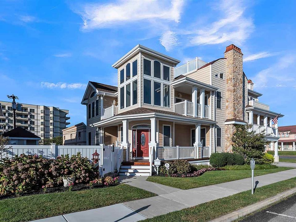 Fabulous Ocean Views!!! This Beautiful Wildwood Crest Single family home is a Beach retreat inside and out. This home offers three levels of unique decorating touches and a roof top deck with views galore. When you walk through the front door you are met with a impressive curved staircase. The first level has a family room, powder room, two large bedroom with a jack and jill full bath. The second floor is the main living area offering a living room, large dining room, designer kitchen with granite counter tops, upgraded appliances and a curved center island that is large enough for 6 stools. The massive architectural windows offers beautiful ocean views throughout this level. Walk out of your living room to a deck with table and chairs for your outside dining. Go down a few stairs and you have two large bedrooms, a full bath and laundry room. The top level of this home takes you into the spacious master bedroom with a gas fire place for those chilly nights and walk out to a private deck. The master bath has a walk in shower and jacuzzi. Many of the rooms throughout the house offer hand painted custom beach scenes that you must see to appreciate.