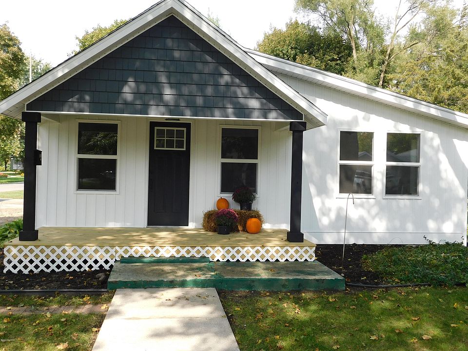 Come see this charming bunglow nestled on a large corner lot with mature trees. This property has been totally remodeled inside and outside with brand new kitchen including new appliances, new flooring throughout as well as all new bathrooms. The outside has a one stall garage, new Pella windows, new roof and new vinyl siding. There is a large front porch as well as a new large pergola, both are perfect for sitting with your morning coffee or afteroon iced tea. You do not want to miss this great home, just move in and enjoy!