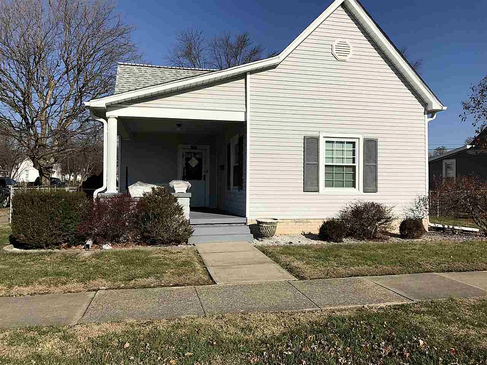 Conveniently located 3bedrm, 1bath home with appliances to stay, enclosed back porch, fenced yard, det. garage w/ workshop, & 12x12 outbldg, all situated on corner lot.
