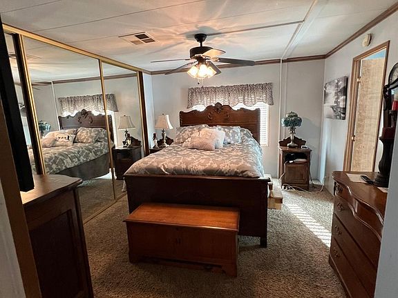 Nice 55 plus adult, gated park home, is ready for you to enjoy. The seller has kept it well maintained with plastered walls and light paint choices, updated siding, and windows, most appliances and counters too! The kitchen is my favorite, a rounded flow of updated counter tops,and some newer appliances, and a built-in desk nearby! 2 nice size bedrooms with 2 baths and indoor laundry utility room, with large formal dining and 2 living area's. The outside is delightful with an extended covered patio, storage units and long covered patio, the front yard has artificial grass, while the back has a grass area for kids or pets to enjoy! Stay cool in the summer with the Swimming pool and clubhouse with lots of activities.