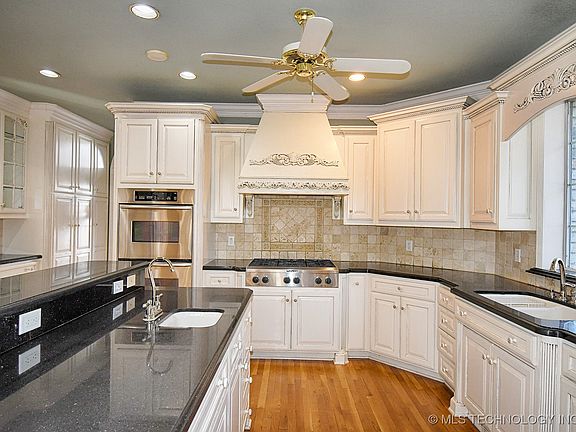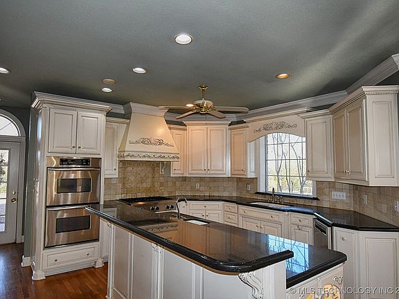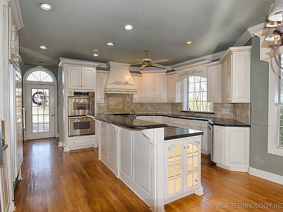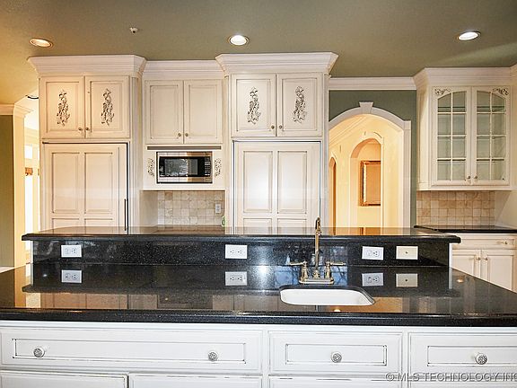 Gorgeous 5 bed, 5 bath Country French custom built home on 1.9 acres m/l on a hilltop overlooking the city of Sallisaw. Kitchen features beautiful black granite countertops, lighted cabinetry, island with vegetable sink, full size sub zero freezer and fridge with custom panels. 2 living areas and a formal dining room. Master features a his and hers ensuite - both with walk in closets. Study with a marble fireplace adjacent to Master suite. Upstairs is 4 bedrooms and 2 bathrooms including a 2nd master suite. New roof fall of 2024, new leaf filter system in 2024 with lifetime warranty transferrable to new owner. Time stamped video alarm system. 2 car attached garage. 5000 square feet - per owner. Seller to purchase a 1 year RSA at closing. Motivated seller!