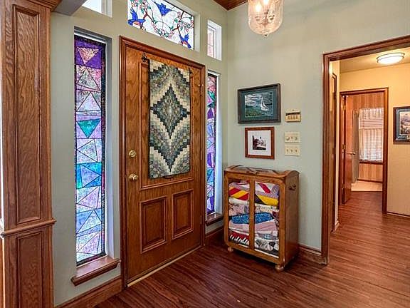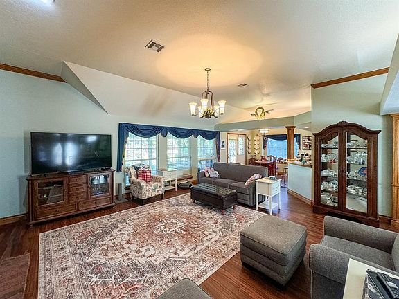 This home was the model home when built - really nice woodwork in the home. Electric insert in fireplace, vinyl flooring throughout. Lovely backyard with patios.