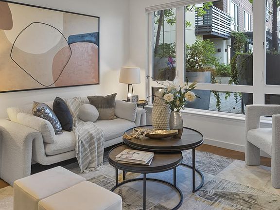 Modern design and a serene Belmont address come together beautifully in this three-bedroom residence at The Ashton, a boutique community built in 2019. With direct ground-floor access, high ceilings, and designer finishes, this home blends sophistication with everyday ease. Step into an open-concept great room where high ceilings and a wall of windows fill the space with natural light. Wide-plank engineered hardwood floors add warmth and continuity while an architectural alcove subtly defines the layout. The chefs kitchen stands out with a striking quartz waterfall island, tall shaker cabinetry, a mosaic tile backsplash, and high-end appliances including a gas range, plus a deep pantry closet for storage. The living area enjoys generous proportions and extends to a dedicated, fenced patio. The primary suite features a walk-in closet and spa-inspired bath with dual vanities, frameless glass shower, and soaking tub. Two additional bedrooms share a full bath with dual sinks and a tub-over-shower combination. Modern amenities include LED lighting, Nest thermostat, smart locks, and two garage spaces with EV charging. Community features include a fitness center, outdoor lounge, and secure access. Near top-rated schools, parks, shopping, Caltrain, and US-101.
