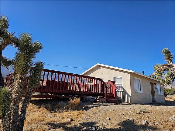 This quaint and cozy cabin sits high above the valley with spectacular views. This home is an open studio floor plan with a wood stove for those cold dessert nights. All of this this on 5 acres, so bring your toys. And, did I mention the large deck for your summer BBQ's, (approx. 384 sq ft.). Needs a little TLC, but a lot of value for the price! Note: This is a hauled water property. (The address on this listing is not a county assigned address and is being used solely for the purpose of identification of this listing on the MLS and media.)