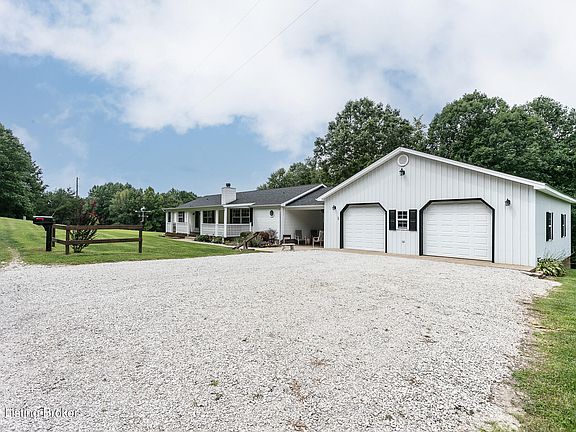 Country living at its best! This beautiful, secluded property is located 25 mins from Elizabethtown and the new battery plant coming in. Enjoy your evenings on either of the two covered porches or the back deck. Inside the home you will find three bedrooms, two full baths, and an office. The living room and eat in kitchen section have an open concept that works great for all occasions. The newer Heating and air system was installed in April 2021 and the roof was replaced in March of 2021. You will also have plenty of room for vehicles, toys, and workspace in the attached garage that measures 36Ft by 28Ft per the pva. Stocked with appliances that remain, this home is move in ready!! Call today for a private showing.