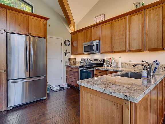 Beautifully renovated end-unit with great lake views from all rooms. This unit features 2 bedrooms with en-suite full baths. The upstairs spacious great room has a large deck to enjoy the lake views from. Cozy up in front of the fireplace during winter evenings.The condo is fully furnished and has a carport. Guest parking is conveniently located in front of the unit.