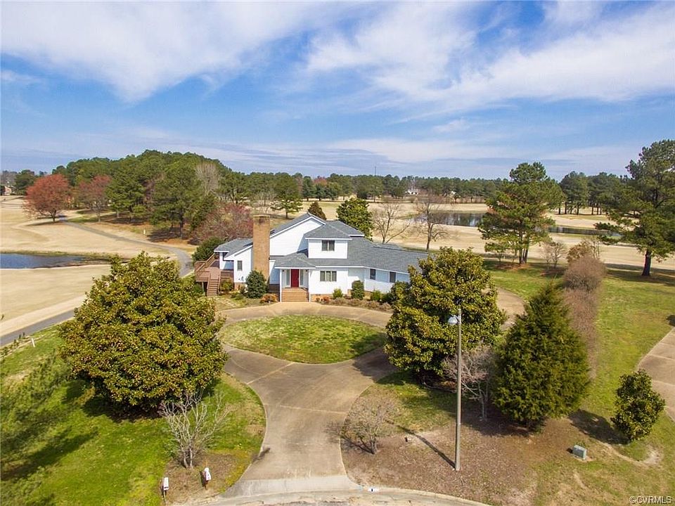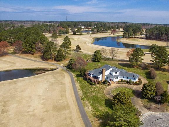 PANORAMIC VIEWS FROM EVERY ROOM OF THIS GOLF COURSE HOME!! The builder of this home won the lottery for lots in this golf course community in Prince George County. This California Contemporary home is in a cul-de-sac and is built on the best lot at the Country Club overlooking the entire scenic 11th hole from tee to green! It also overlooks the 16th fairway and green with abundant lake views! The home has a very open floor plan with its freshly painted interior and refinished hardwood floors, a brand new 50 year roof, all new skylights, a brand new heat pump, home office, den & studio in addition to a spacious great room with fireplace that opens to an incredible deck for entertaining or relaxing. The total square footage of this home is over 4850 and includes an oversized 2 car garage, workshop and a convenient carport right off the kitchen! This home is 10 minutes from Ft. Lee and 30 minutes to downtown Richmond!