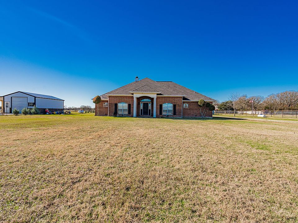 Deadline for Showings: January 17, 3PM. Deadline for offers: January 17, 5PM. Nestled 2+ acres, this elegant home is a true sanctuary of rural tranquility and modern convenience. Located about 20 miles southeast of Dallas, enjoy a small-town atmosphere with easy access to city amenities. As you enter, you're greeted by a bright and inviting living room with a picture window, tray ceilings, and cozy fireplace that sets the tone for relaxation. Natural light throughout shows the thoughtful design and welcoming ambiance. The gourmet eat-in kitchen is a dream with SS appliances, breakfast bar for busy mornings on the go, and an abundance of counter and cabinet space. Whether you're preparing meals or hosting gatherings, this kitchen is equipped to handle it all. Nearby, a dedicated laundry room adds convenience and efficiency to daily living. The primary suite is a private retreat, thoughtfully designed to pamper and inspire. It features a spa-like bathroom with a garden tub, split vanities, and spacious walk-in closet with a picture window, a true haven for organization and style. Each detail in this suite has been carefully curated to provide comfort and luxury. Additional bedrooms are generous, offering flexibility. The layout ensures privacy and functionality, making it ideal for a variety of needs. Step outside to the covered back patio, where you can unwind while taking in the breathtaking views of the rural Texas countryside. The expansive backyard is perfect for outdoor entertaining, gardening, or simply enjoying the serenity of nature. The property offers plenty of space for your imagination to flourish, whether you envision a pool, workshop, or play area. Combine is a charming community known for its close-knit feel and peaceful surroundings. With its proximity to Dallas, you can enjoy the best of both worlds - quiet country living and the excitement of city life.