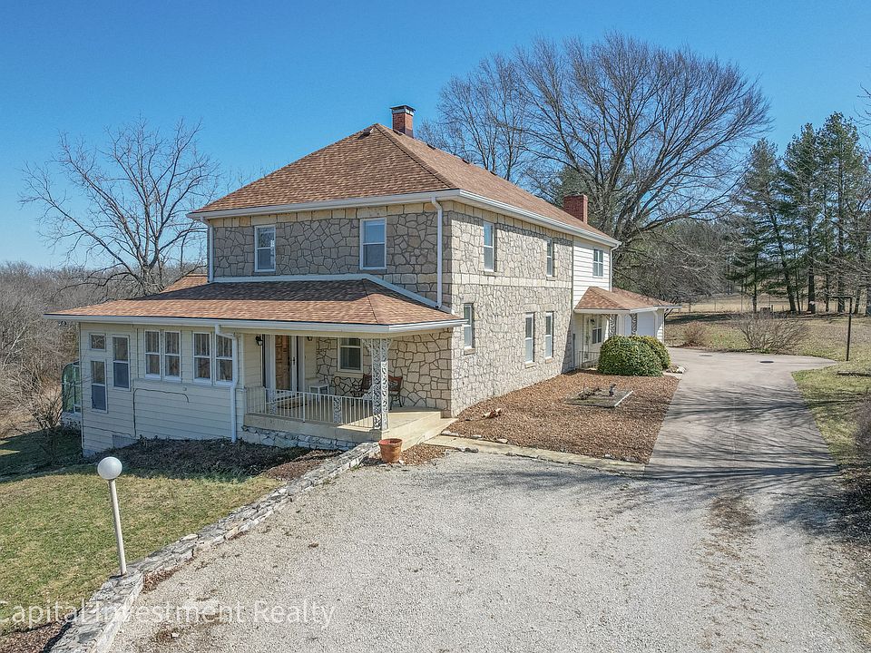 Experience the perfect blend of rustic charm and modern convenience in this expansive farmhouse on the edge of town in Jefferson City. This property offers utmost privacy with a gated entrance to the long driveway. The home offers 4 bedrooms, 4.5 baths, a 2 car garage. Nestled on approximately 5 acres, this home offers breathtaking countryside views, wide-open spaces, and endless possibilities. Start a garden in the various raised beds, play basketball or baseball with a fenced in baseball diamond! Plenty of room is enjoy the outdoors. This home has been beautifully restored and offers abundant natural light, every room exudes warmth and comfort. Enjoy the generous sized kitchen with new stainless steel appliances and a large island all with new quartz countertops. New front loader washer/dryer combo has been installed off of the kitchen next to the half bath. Enjoy meals on the sunporch right off the kitchen. This home has a formal dining room and living room with built in shelving. There is a main bedroom and full bathroom on the lower level and 3 bedrooms are upstairs along with 2 bathrooms. The basement features a wet bar, bathroom, and sunroom. The showstopper sunroom is perfect for viewing the rolling hills. Whether you're seeking a country retreat or a place to create lifelong memories, this farmhouse is a rare gem that combines timeless appeal with contemporary amenities. No pets and no deposit. We require a credit score of 620 or above and that rent is no more than 30% of your income. Must pass a rental and criminal background check. Non-refundable application fee(s) apply. HUD or other rental assistance programs not accepted. Come experience the beauty and tranquility of country livingapply today!