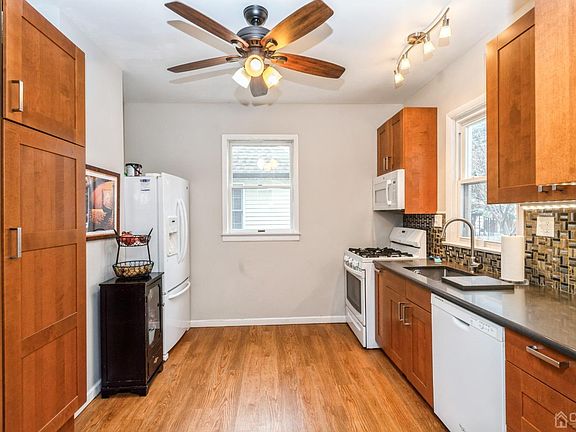 Welcome Home. This Beautiful Home welcomes you with a rocking chair front porch for summer nights. Enter into an inviting Living Room & Dining Room with a Bay Window & Hardwood Floors. The updated Gourmet Kitchen offers quartz countertops and upgraded backsplash. Enjoy the first floor laundry area as well as a first floor Office/Den & Full Bath. The Second floors has 5 Spacious Bedrooms and a Luxurious Updated Full Bath with Large Linen Closet. Relax on the Patio and enjoy the fenced in parklike yard. Additional Updates include New Furnace, A/C, Driveway & Sidewalk. Taxes Include Sewer & Garbage. Convenient to Schools, Highways, Train, Bus, Restaurants, Theatres & more. Don't Miss it. Highest & Best Offers Due Wed, 4/3 at Noon.