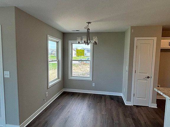 Interior Features: Custom-built painted maple cabinets throughout. Premium stainless steel dishwasher and microhood. Upgraded premium countertop with a spot-resistant stainless steel pull-down kitchen faucet and an 8" deep stainless steel sink. Durable locking vinyl plank flooring in the kitchen, dining room, great room, laundry, and both bathrooms. Bathrooms feature upgraded cultured marble vanity tops with wave bowls, 36" tall vanities, high-rise elongated toilets, and upgraded fixtures. Primary bathroom includes a 5' walk-in shower with a luxurious rain showerhead. Great room boasts a chamfer ceiling, a lighted ceiling fan with speed control, and an upgraded interior lighting package. Rounded drywall corners and wide painted trim for a polished finish. Primary bedroom includes a walk-in closet and a lighted ceiling fan with speed control. Exterior Features: 6' glider patio door with a foot lock leading to a non-structural patio. Attractive exterior with a partial stone front, upgraded vinyl siding, and board and batten siding. Address stone, Landmark shingles, and upgraded exterior lighting. Front door with a sidelite for added curb appeal. Garage: Finished 2-car garage with a wireless keypad and door opener. Includes a dedicated electrical outlet for added convenience.