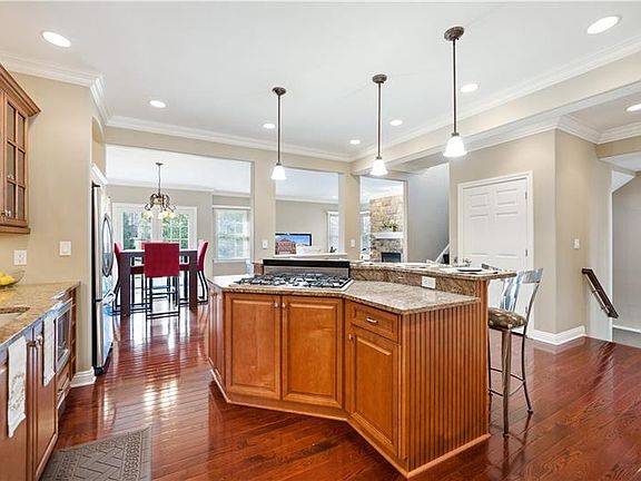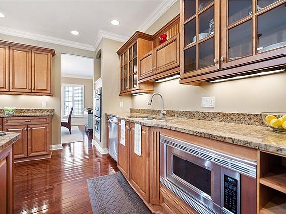 Private CulDeSac St is where you'll find this Spectacular Luxury End Unit Townhouse. Fabulous Open Floor Plan with the most Private back yards! Gleaming Cherry HW flooring on the Main and Upper Levels. Gourmet Kitchen with seating for 4 around the Island, Granite Counters and SS App, Built in DBL Ovens,1 Convection, BI Microwave, Gas Cook Top and plenty of room for storage in the Large Pantry. Formal DR with Wainscoting , Crown Molding and Medallion Ceiling with Plantation Shutters. The HUGE Family Room has a featured FULL STONE WALL WITH Gas FP , W/O to Private Patio which faces the Common Areas. The Owners Suite is HUGE with Ceiling Fan, Jacuzzi Tub, DB Sinks, Granite Counters, Linen Closet, W/I Shower with Custom Glass Drs, BI Seating, Private commode, and Carpeted HUGE WALK IN CLOSET. Front BR has it's own Full Bath, Linen Closet and W/I Closet, Plantation Shutters. Laundry Rm Upper L with Sink and Cabinetry .LL Office Custom BuiltIns Cabinetry. ELEVATOR SERVICES ALL 3 FLRS.