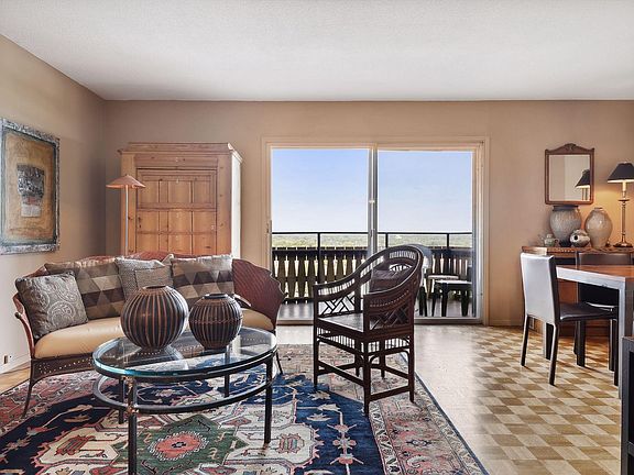 Sophisticated style and fabulous views from this two bedroom/two bath corner unit at Summit House. Enjoy looking out over the city skyline, the Sculpture Garden and Walker Art Center, with long vistas from your private balcony. Classic condo style with parquet hardwood floors, neutral palette, open living and dining for entertaining. Efficient enclosed kitchen allows for plenty of work and storage space. Bedroom 1 looks at downtown and has a wall of closets. Bedroom 2 is spacious with a large closet, and has been used as a media room/den. Full bath with tub/shower combo near bedrooms, convenient half bath off the main living area. Several storage closets throughout. Great amenities between the two buildings - rooftop pools with sundecks, exercise and community spaces, 24-hr security desk and underground parking. All inclusive - HOA covers most utilities.