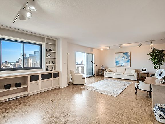 Enjoy all that Minneapolis has to offer, sunsets, and many spectacular views from the two balconies on the 21st floor of Summit House – Loring Park and pond views, the Basilica, downtown Mpls, and downtown St. Paul. Two parking spaces in the underground heated garage. Original wood parquet floors throughout including under carpeted bedrooms, and well laid out combination of two units makes this a rare find. Comparable units with this floor plan have sold in the $ 485K range. Large living room adjoins dining room - could be opened to the kitchen. Off of the living space is the hallway with three bedrooms and two baths. Primary bedroom has ¾ bath ensuite with laundry, plus large walk-in closet. Two other nice sized bedrooms off the hallway used for TV Room and as office/guest room. Ample closet and storage space. Same owner for 32 years. You could make your mark slowly or quickly updating kitchen, and bathrooms. Total HOA plus taxes in 2021: $ 1715/mo. In 2022: $1801/mo.