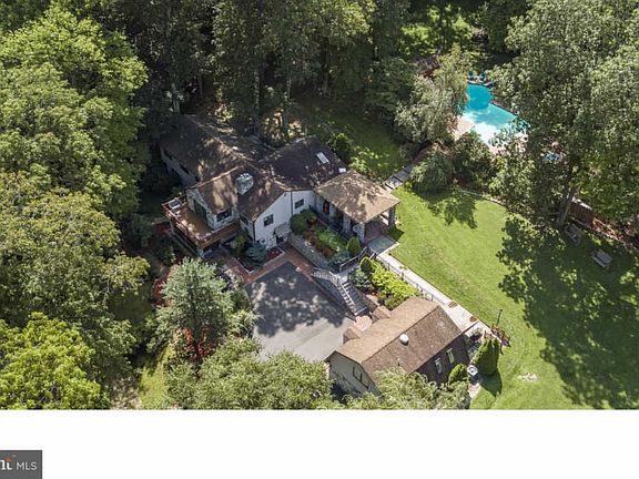 BREATHTAKING, ONE OF A KIND PROPERTY! Tucked away in a wooded setting with 100 year old oak trees, is a unique, charming, expertly maintained property! The property will quickly become your center of peace & tranquility. Enter through a stone & brick covered terrace, & step into the breakfast room, large enough to seat 12 guests. Next to the breakfast room, cozy up with a book in the reading room with pellet stove & enjoy an exquisite view. The large kitchen flows into the breakfast room for easy entertaining. The sun-filled living room has a gas fireplace for cold weather & opens to an outdoor deck for warmer months. Separating the living & dining area is an atrium-like garden with plentiful light to tickle your green thumb. The spacious master suite includes a walk-in closet & wait till you see the "shoe" closet! Two other bedrooms share a full hall bath with Jacuzzi tub. This level also has a home office with built-in cabinets. A wide circular staircase leads to a lower level entertainment area with gas fireplace & an all season room with heated floor & outside access. Completing the ground floor is an exercise room (or 4th bedroom), powder room & laundry. Separate from the main house is a furnished, 2 story cottage; perfect for an au pair, in-laws or adults who've returned to the nest. The cottage includes a kitchen, two spacious bedrooms, each with full bath (radiant floor heat), stacked washer/dryer, central HVAC, free standing gas fireplace & a fully floored attic. The cottage is built into a hillside affording ground access and patios on each level. The 3 car, 2 story garage features a pellet stove & work bench on the ground level. The 2nd floor with hardwood floors & storage could be an artist's studio, crafting workshop or private office. Due to its unique setting in the hillside the 2nd level also has direct outside access to ground level. This unique and amazing property offers two parcels. The main home, garage and cottage is situated on a 1.61 acre lot with perimeter fencing & plenty of flat play area, a koi pond, & soothing stream. The listing also includes an adjoining 1.55 acre lot with a secluded in-ground pool, pool house & the option of a separate driveway (Tax ID# 58-00-08962-007). Since the two parcels are already subdivided, an additional home could be built on the parcel which currently includes the swimming pool. Located near major highways, Gulph Mills train station & shopping/dining makes this property very convenient.