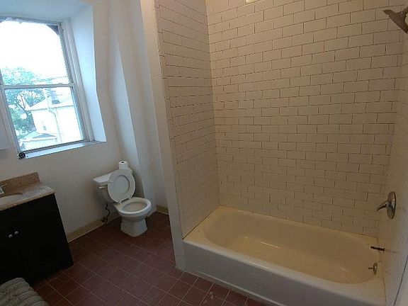 NO REALTOR FEE, Large 2 bedroom in historic brownstone type building, high ceilings, hardwood floors throughout. over sized freshly renovated eat in kitchen with new stainless appliances, new granite counters, subway tiled back splash and new floor, big living room, and large bedroom that easily fits a king sized bed and dressers, 2nd bedroom will fit a queen sized bed or make an excellent home office, recently renovated over sized bathroom with subway tiled shower. top floor with great light. 1 assigned off street parking spot included with rent, Large, private lockable storage units available in basement. town park/greenspace 100 feet away on broad street, short walk to NYC express bus (21 minute ride) to port authority. sorry-no pets. good credit required. Owner pays water, trash, sewers, hot water