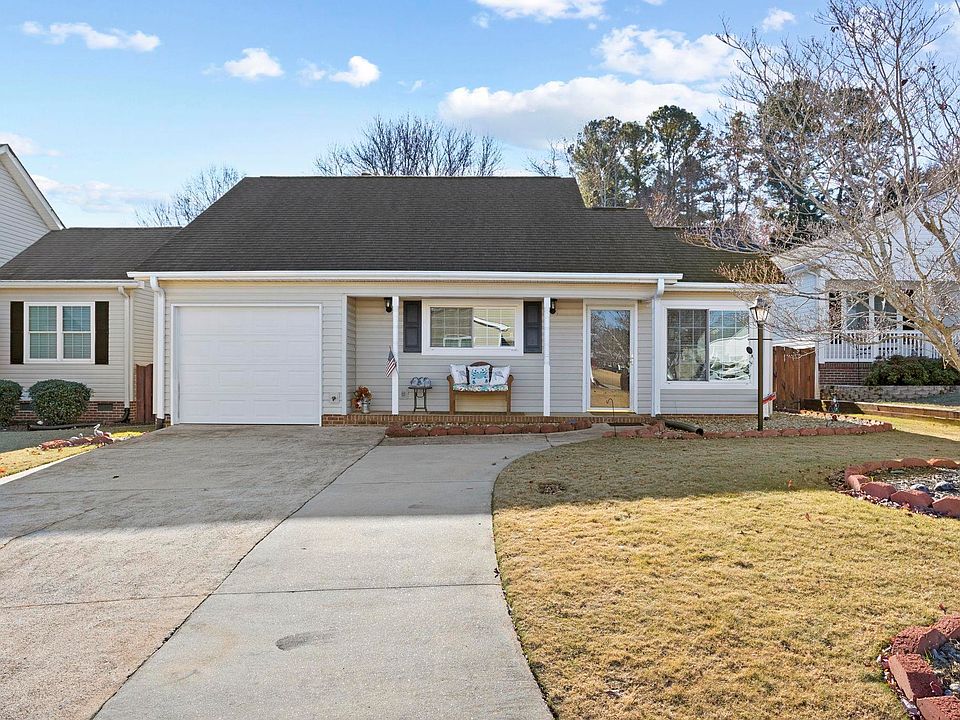 Welcome to this charming home in Easley’s Cobblestone Place neighborhood! Step through the inviting front porch and into a delightful sunroom, the perfect spot for enjoying your morning coffee or unwinding at the end of the day. Mere steps away you'll find a spacious eat-in kitchen with access to the laundry room for everyday convenience. The heart of the home is the living room, featuring vaulted ceilings, a cozy fireplace, and ample space for a dining area. The primary bedroom offers a peaceful retreat with an ensuite bathroom, while two additional bedrooms and a hallway bathroom provide flexibility for family, guests, or additional storage. Step outside to the screened porch or patio, both overlooking the fenced backyard—a private oasis for outdoor entertaining or relaxation. Conveniently located just miles from Highway 123, this home combines the tranquility of a quiet neighborhood with easy access to shopping, dining, and more. Don't miss this opportunity to make this charming home yours!